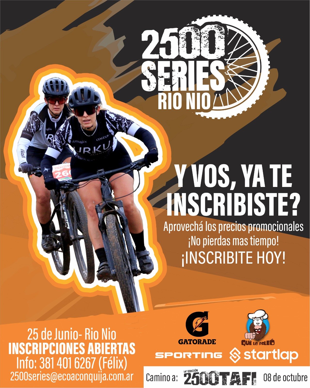 1.-PREINSCRIPCIÓN: se completa cuando se completan los datos personales ingresando en: codaregistros.com/evento/2500-rally-mtb-series-rio-nio-2023